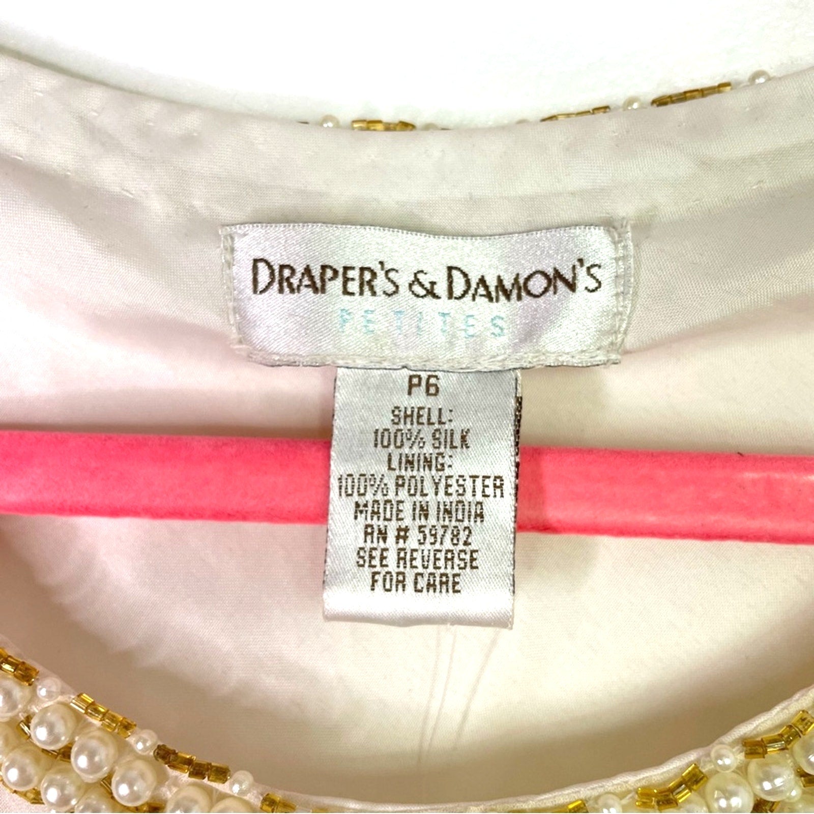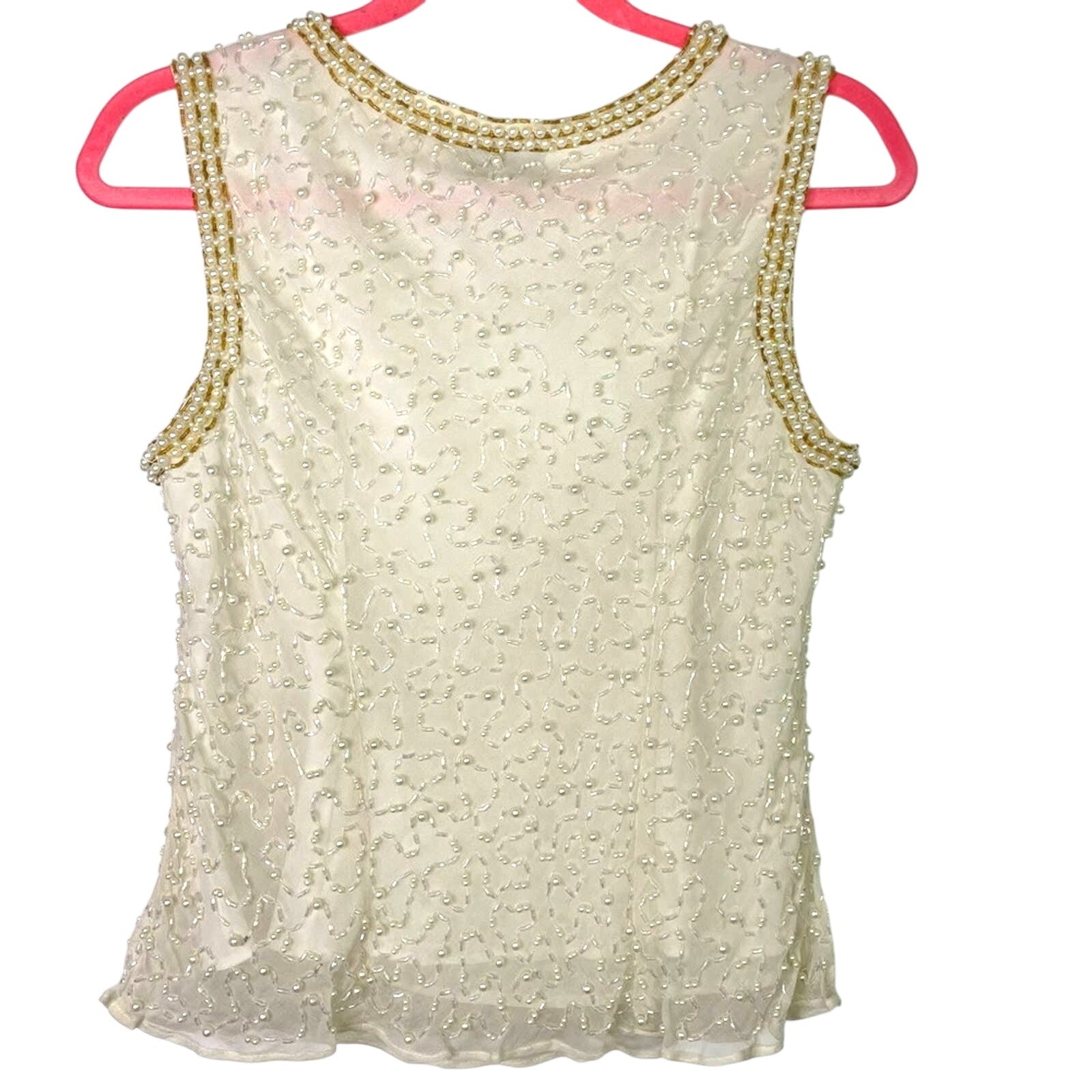 Vintage Silk Beaded Pearls Blouse Tank Top White Gold Sparkle